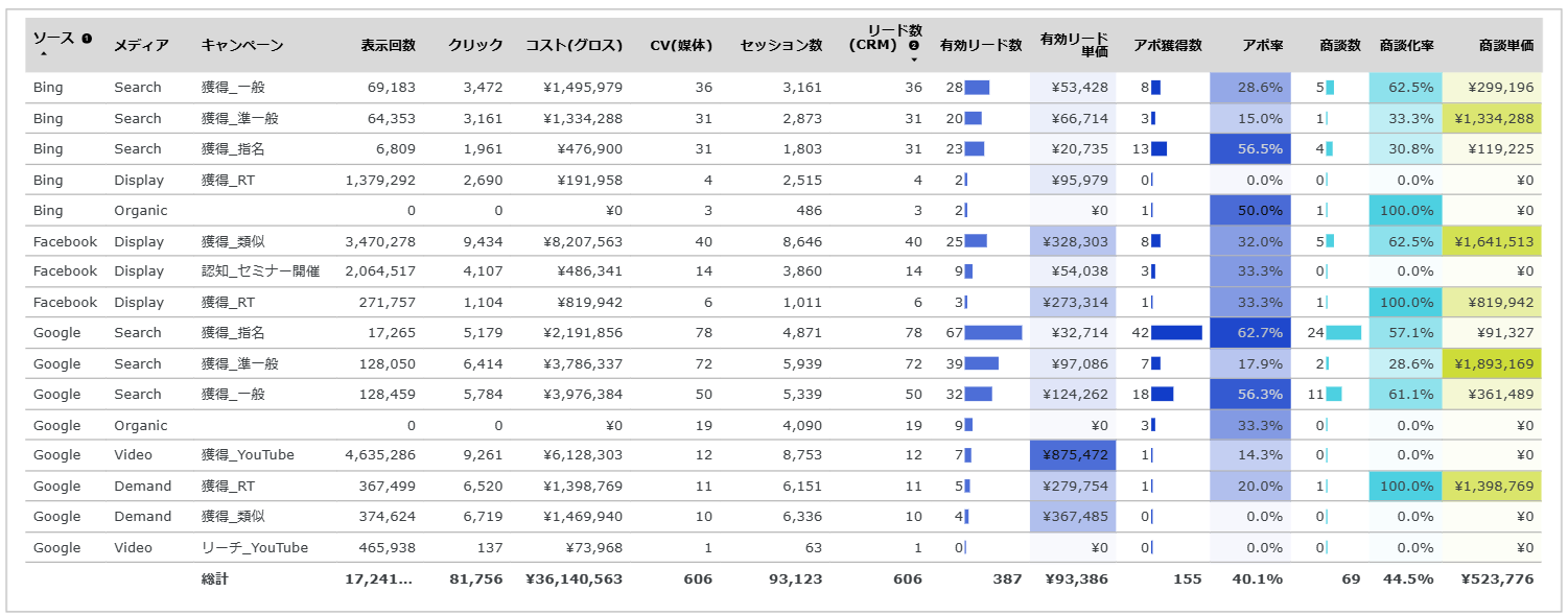 実際に弊社でご支援していたクライアントでも、広告のCPAで評価すると効率の良い施策と評価していたものが、商談単価や受注単価もふくめて評価をすると、実は施策効率が悪いことが分かった事例もあります。