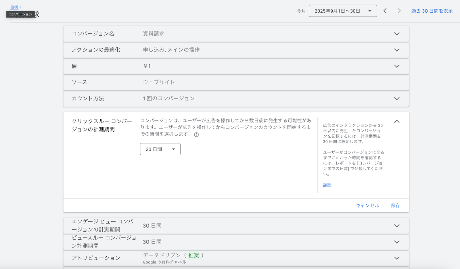 設定ごとにコンバージョン数やCPAが変化するため、どのモデルで成果を評価すべきか判断する際に活用しましょう。