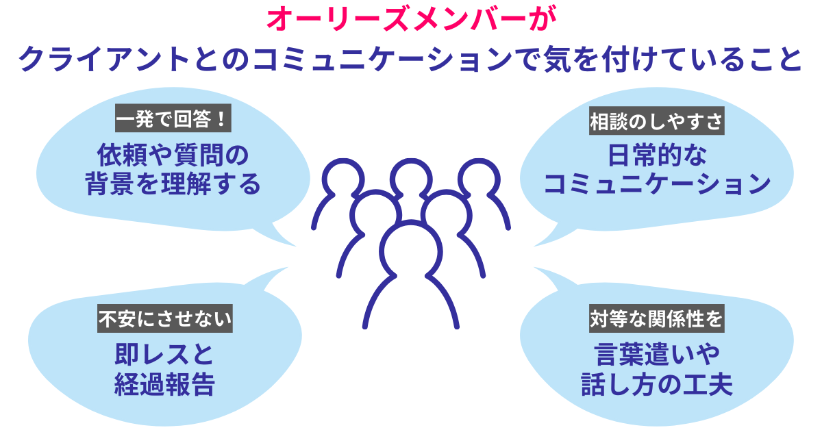 また、オーリーズでは、単にクライアントの依頼に応えるだけでなく、その背景にある意図や戦略を理解しようと努める姿勢も大切にしています。