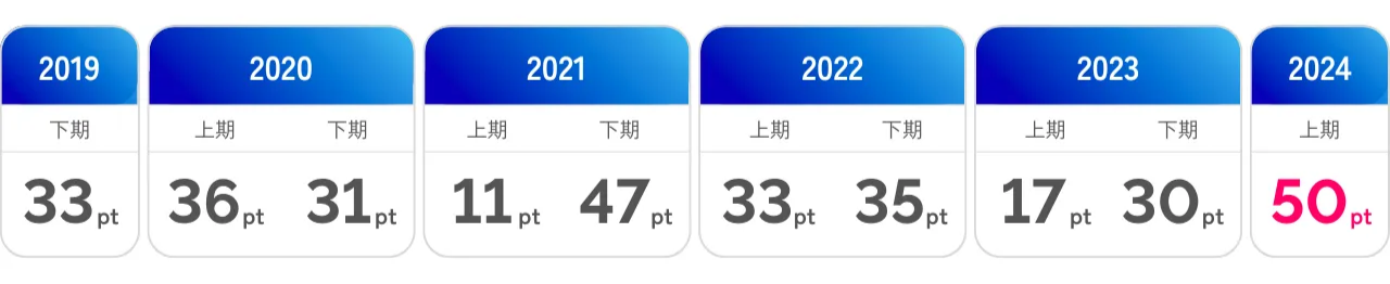 今回2024年上期は50ポイント(過去最高スコア)を獲得しました。